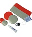 Gumotex reparatieset in twee kleuren met diverse patches, lijm, opbergdoos en Push-Push adapter.